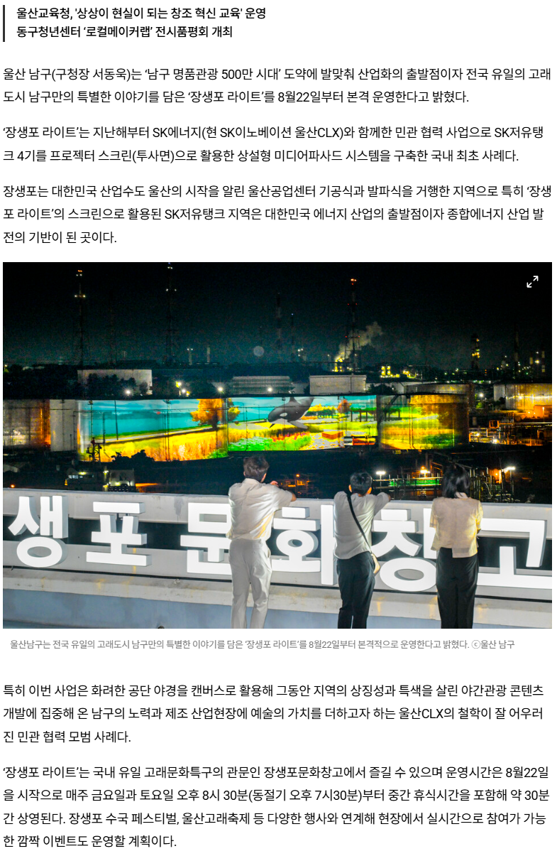 [울산 24시] 울산 남구, 장생포 라이트 운영…산업도시 울산의 빛 담다 < 영남 < 네트워크 < 기사본문 - 시사저널