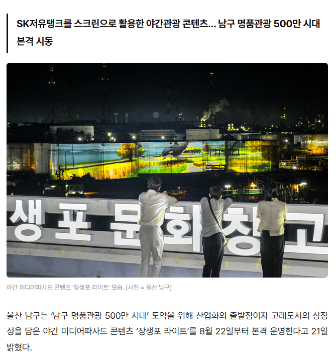 울산 남구, 국내 최초 산업 경관 활용 미디어파사드 ‘장생포 라이트’ 운영 개시