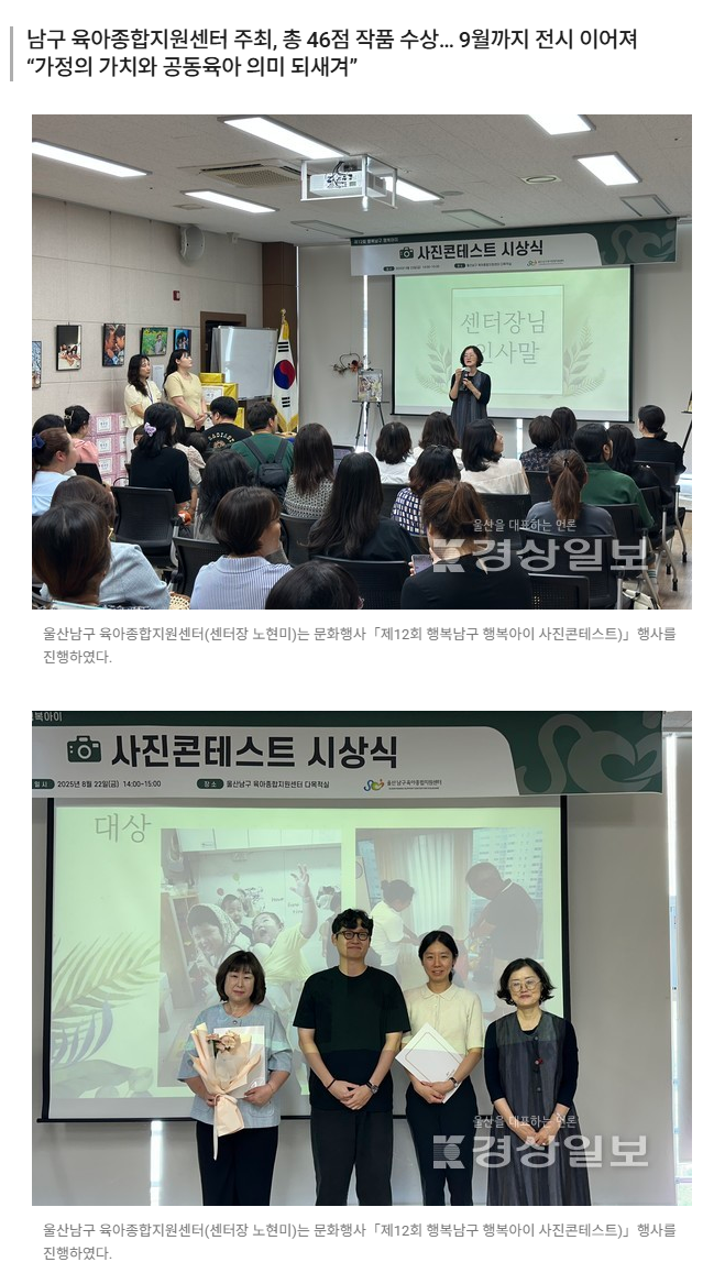 아이들의 웃음 속에 담긴 행복… 울산남구 사진콘테스트 시상식 열려 < 울산 < 사회 < 기사본문 - 경상일보