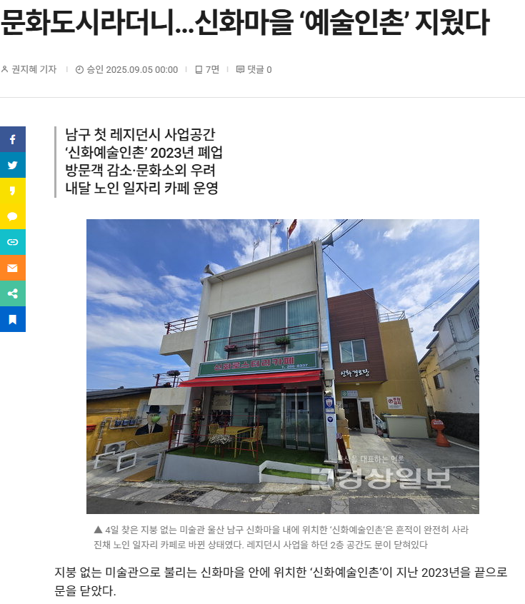 문화도시라더니…신화마을 ‘예술인촌’ 지웠다 < 울산 < 사회 < 기사본문 - 경상일보