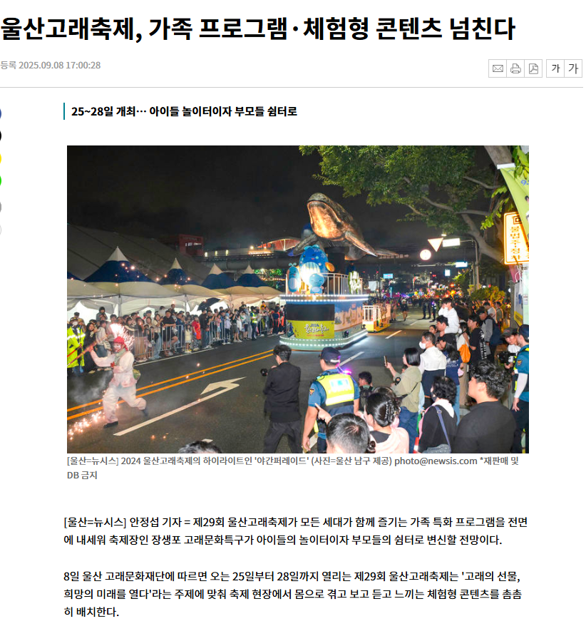 울산고래축제, 가족 프로그램·체험형 콘텐츠 넘친다 :: 공감언론 뉴시스 ::