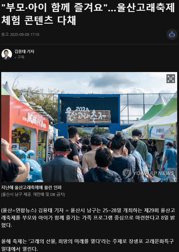 "부모·아이 함께 즐겨요"…울산고래축제 체험 콘텐츠 다채 | 연합뉴스