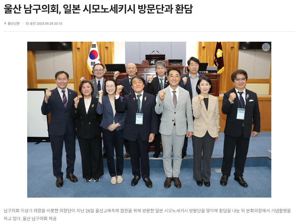 울산 남구의회, 일본 시모노세키시 방문단과 환담 < 포토뉴스 < 포토 < 기사본문 - 울산