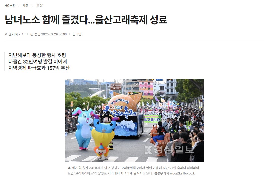 남녀노소 함께 즐겼다…울산고래축제 성료 < 울산 < 사회 < 기사본문 - 경상일보