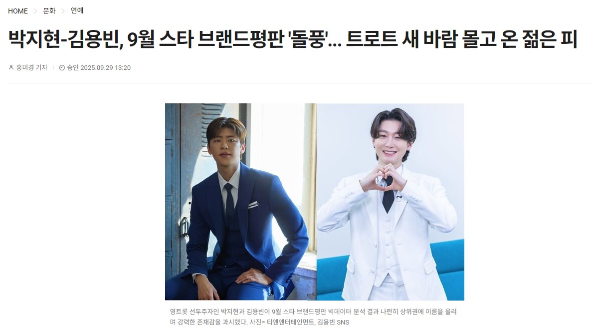 박지현-김용빈, 9월 스타 브랜드평판 '돌풍'... 트로트 새 바람 몰고 온 젊은 피 < 연예 <