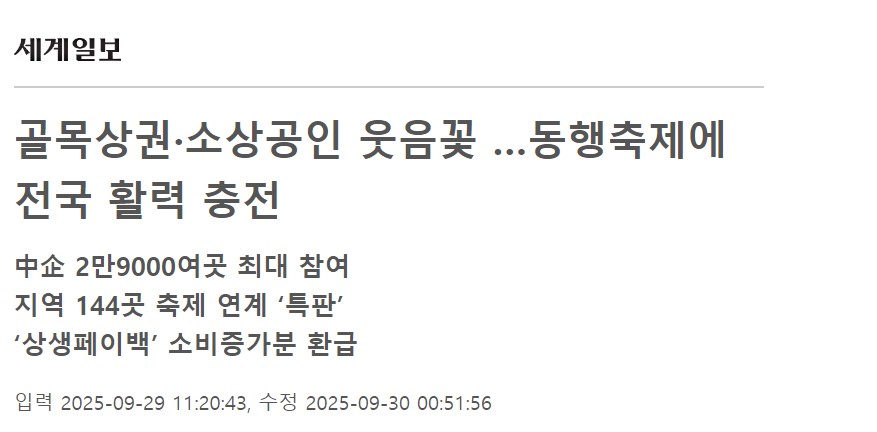 골목상권·소상공인 웃음꽃 …동행축제에 전국 활력 충전 | 세계일보