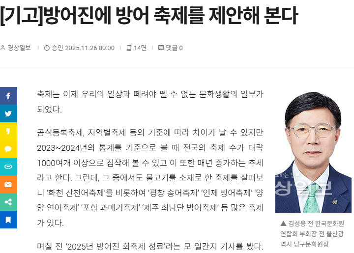 [기고]방어진에 방어 축제를 제안해 본다 < 사외칼럼 < 독자기고 < 오피니언 < 기사본문 - 경상일보