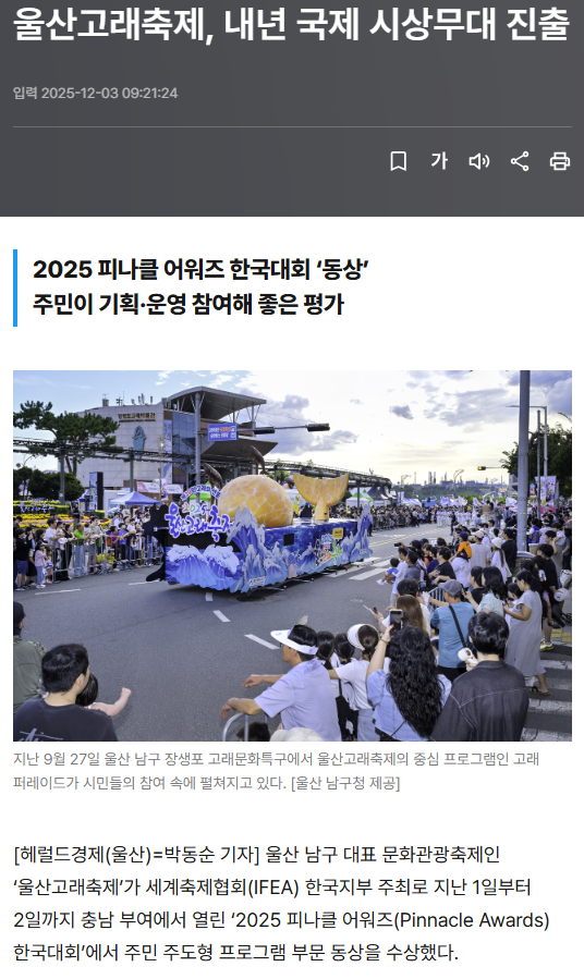울산고래축제, 내년 국제 시상무대 진출 - 헤럴드경제
