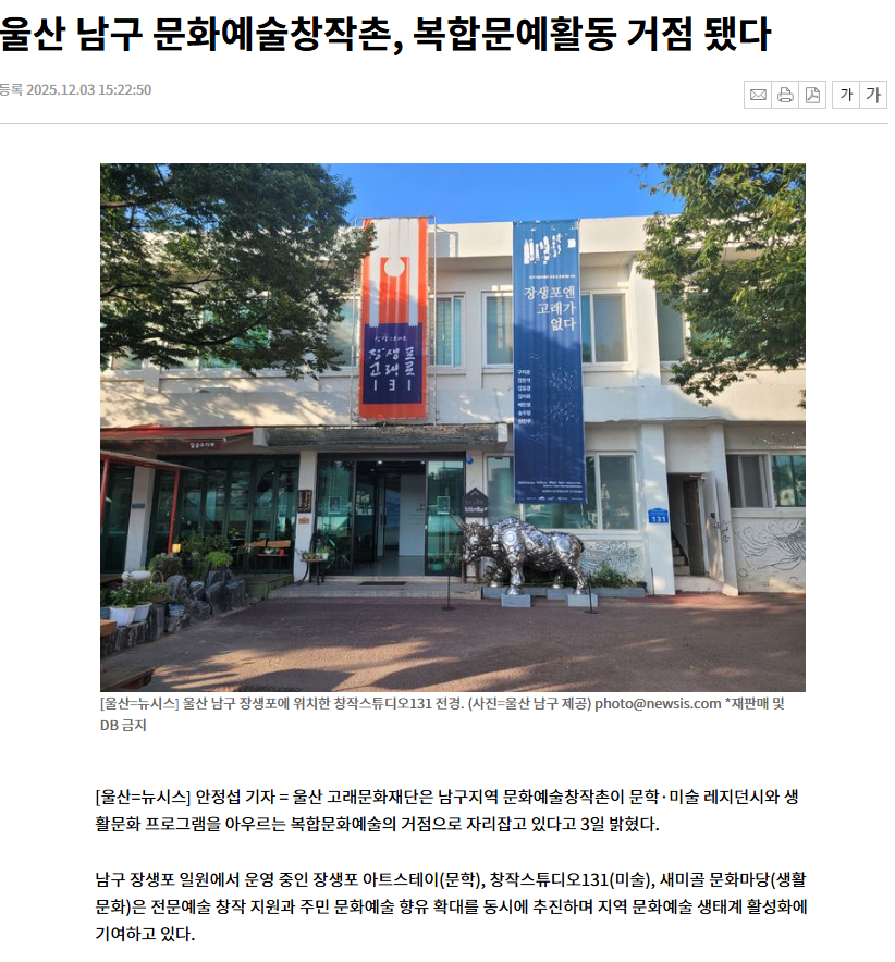 울산 남구 문화예술창작촌, 복합문예활동 거점 됐다 :: 공감언론 뉴시스 ::