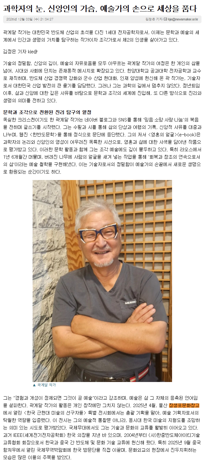 과학자의 눈, 신앙인의 가슴, 예술가의 손으로 세상을 품다