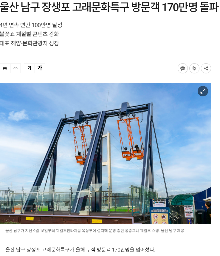 계절별로는 6월 수국페스티벌, 여름방학 특별 프로그램, 9월 울산고래축제, 추석 연휴 집중 운영 등이 방문 수요를 떠받쳤고, 신규 콘텐츠로는 울산 최초 공중그네 웨일즈 스윙, 연말 행사 화이트 크리스마스 in 장생포가 언급됐다.