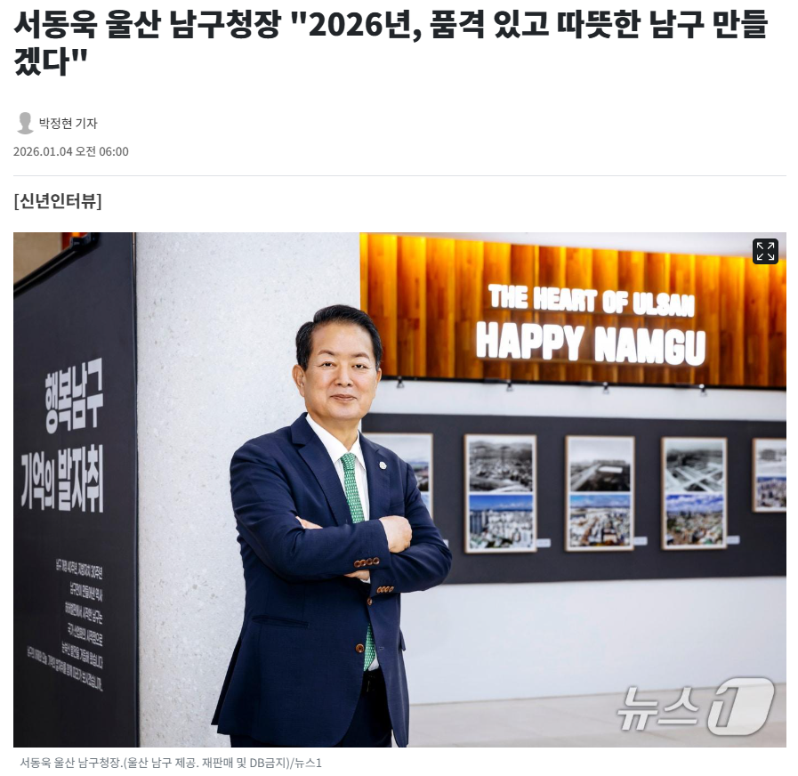 서동욱 울산 남구청장 "2026년, 품격 있고 따뜻한 남구 만들겠다" - 뉴스1