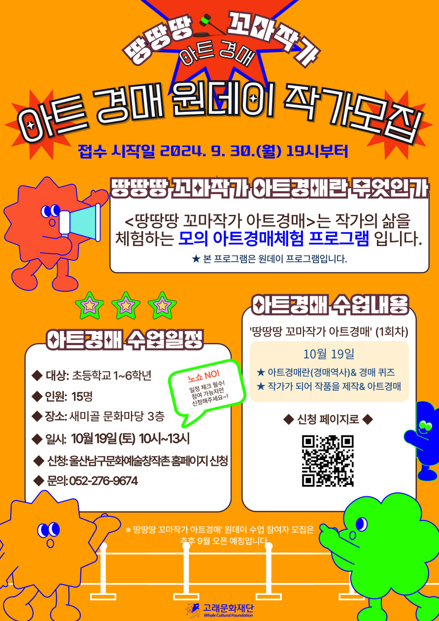 <땅땅땅 꼬마작가 아트경매> 참여 꼬마작가 모집_원데이