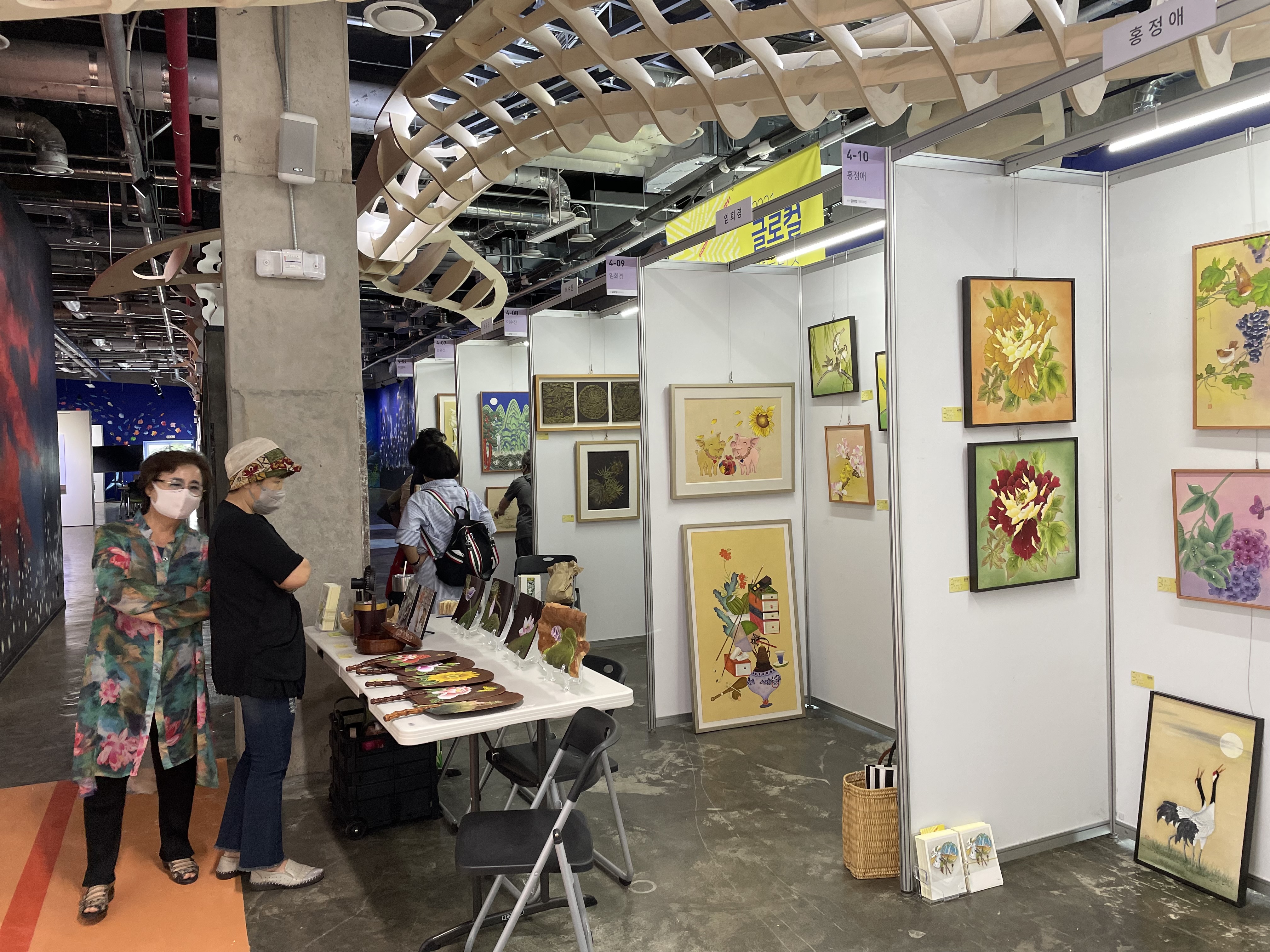 3층과 4층으로 나눠진 91개의 부스에는 100여명의 작가들이 작품을 내걸었고, 개막 첫날인데다 평일이어서인지 관람객들이 많지 않았다.