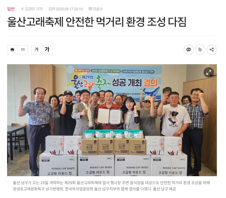 울산고래축제 안전한 먹거리 환경 조성 다짐 < 일반 < 사람들 < 기사본문 - 울산신문