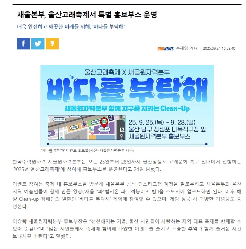 새울본부, 울산고래축제서 특별 홍보부스 운영