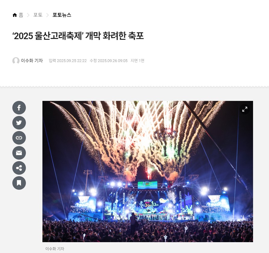 ‘2025 울산고래축제’ 개막 화려한 축포 < 포토뉴스 < 포토 < 기사본문 - 울산매일 - 울산최초, 최고의 조간신문