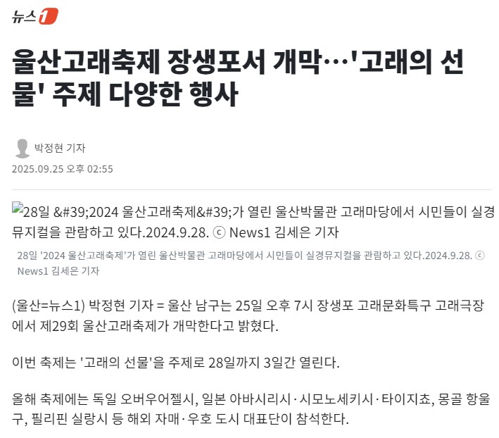 울산고래축제 장생포서 개막…'고래의 선물' 주제 다양한 행사 - 뉴스1