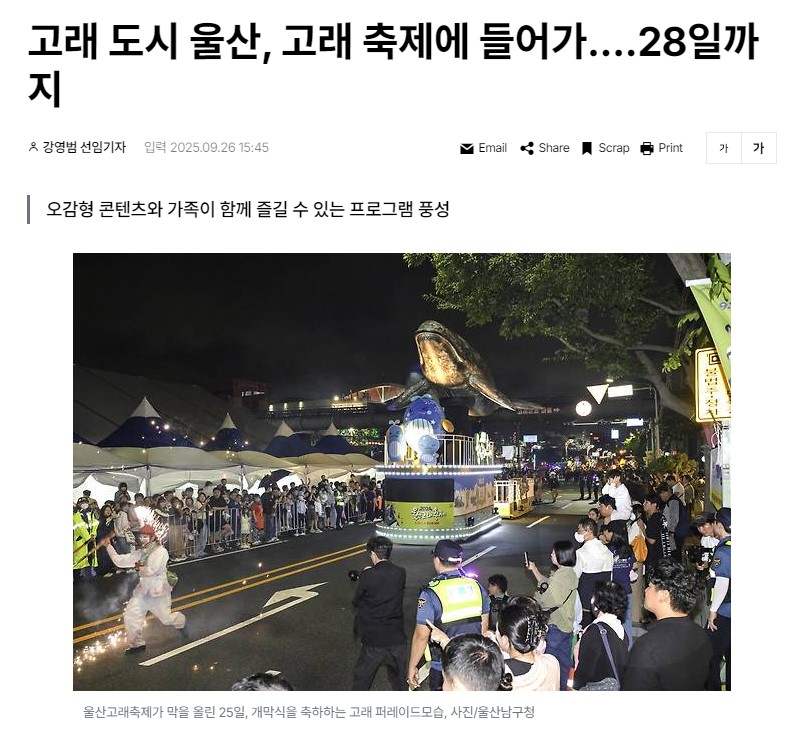 고래 도시 울산, 고래 축제에 들어가....28일까지