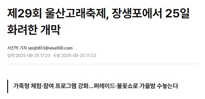 제29회 울산고래축제, 장생포에서 25일 화려한 개막 - 브릿지경제