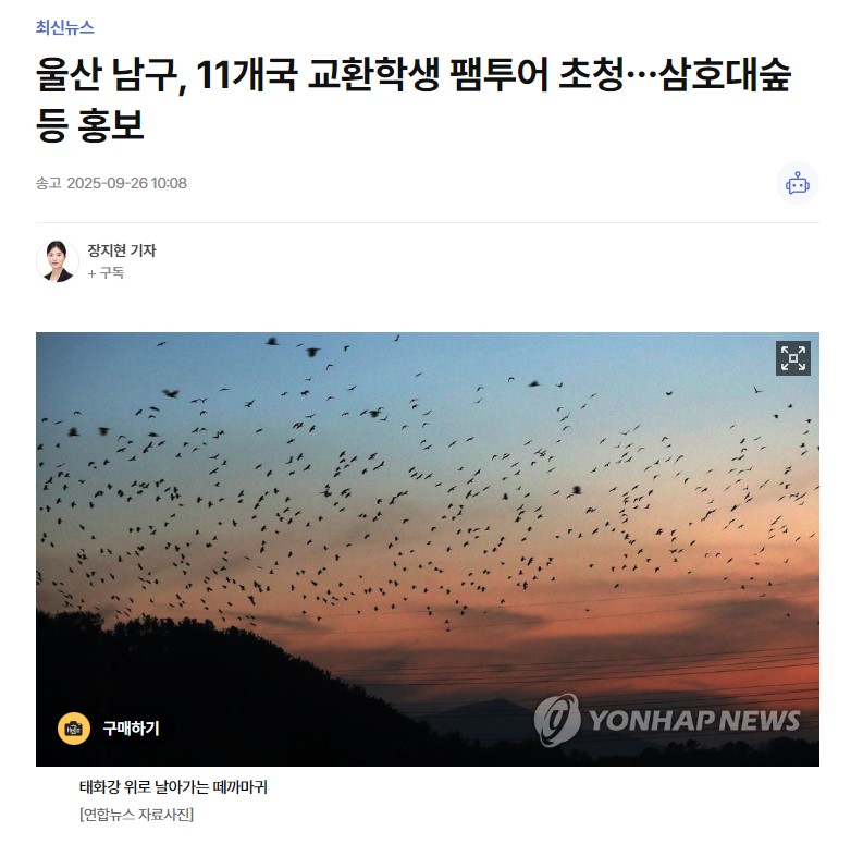 울산 남구, 11개국 교환학생 팸투어 초청…삼호대숲 등 홍보 | 연합뉴스
