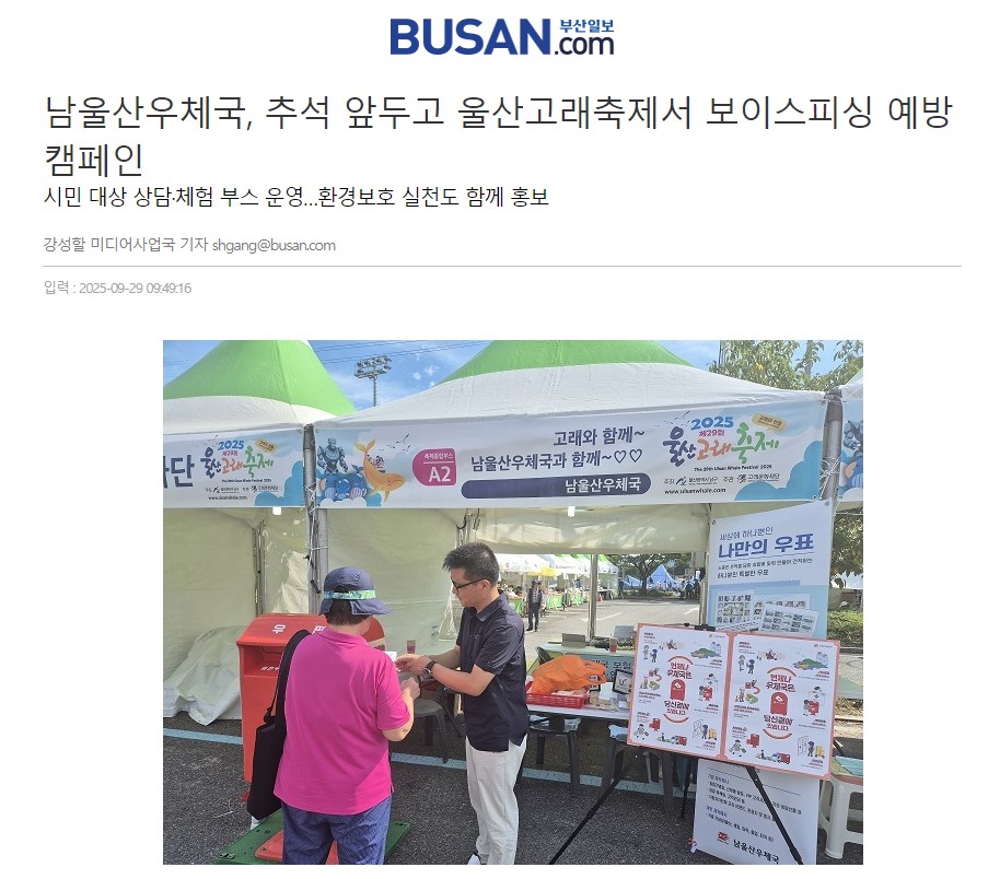 남울산우체국, 추석 앞두고 울산고래축제서 보이스피싱 예방 캠페인 - 부산일보
