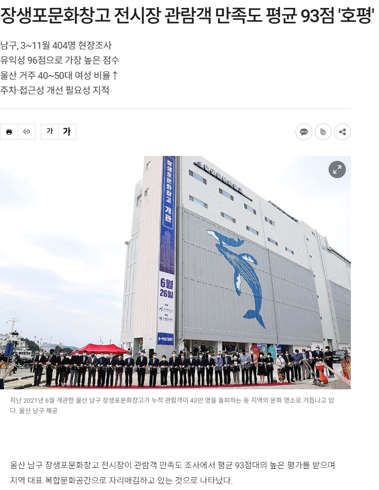 장생포문화창고 전시장 관람객 만족도 평균 93점 '호평' < 일반 < 사회 < 기사본문 - 울산신문