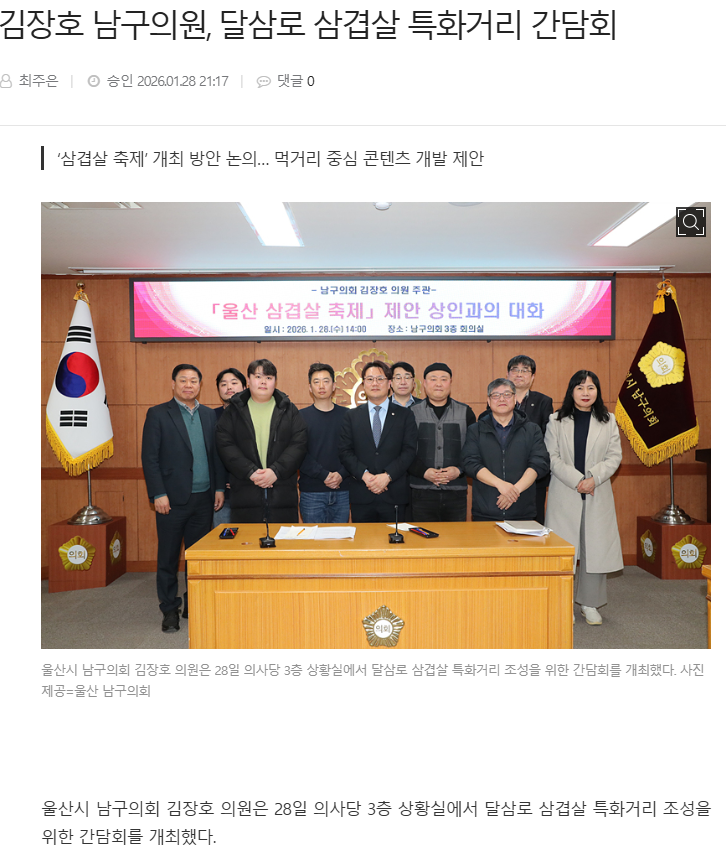 김장호 남구의원, 달삼로 삼겹살 특화거리 간담회 - 울산제일일보