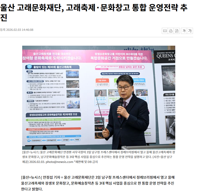 울산 고래문화재단, 고래축제·문화창고 통합 운영전략 추진 :: 공감언론 뉴시스 ::