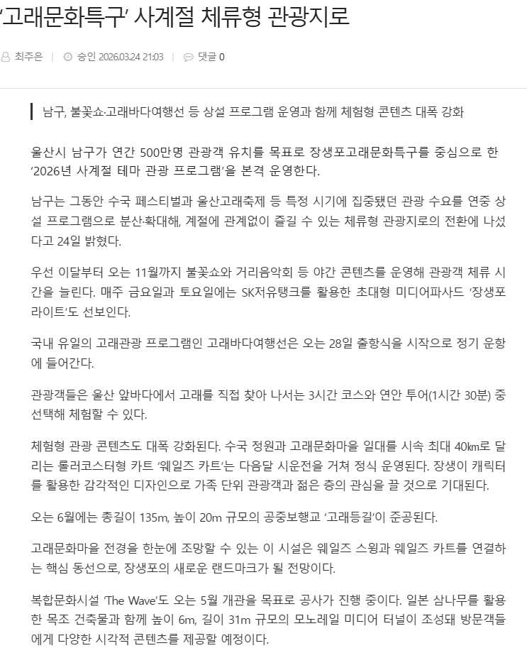 ‘고래문화특구’ 사계절 체류형 관광지로 - 울산제일일보