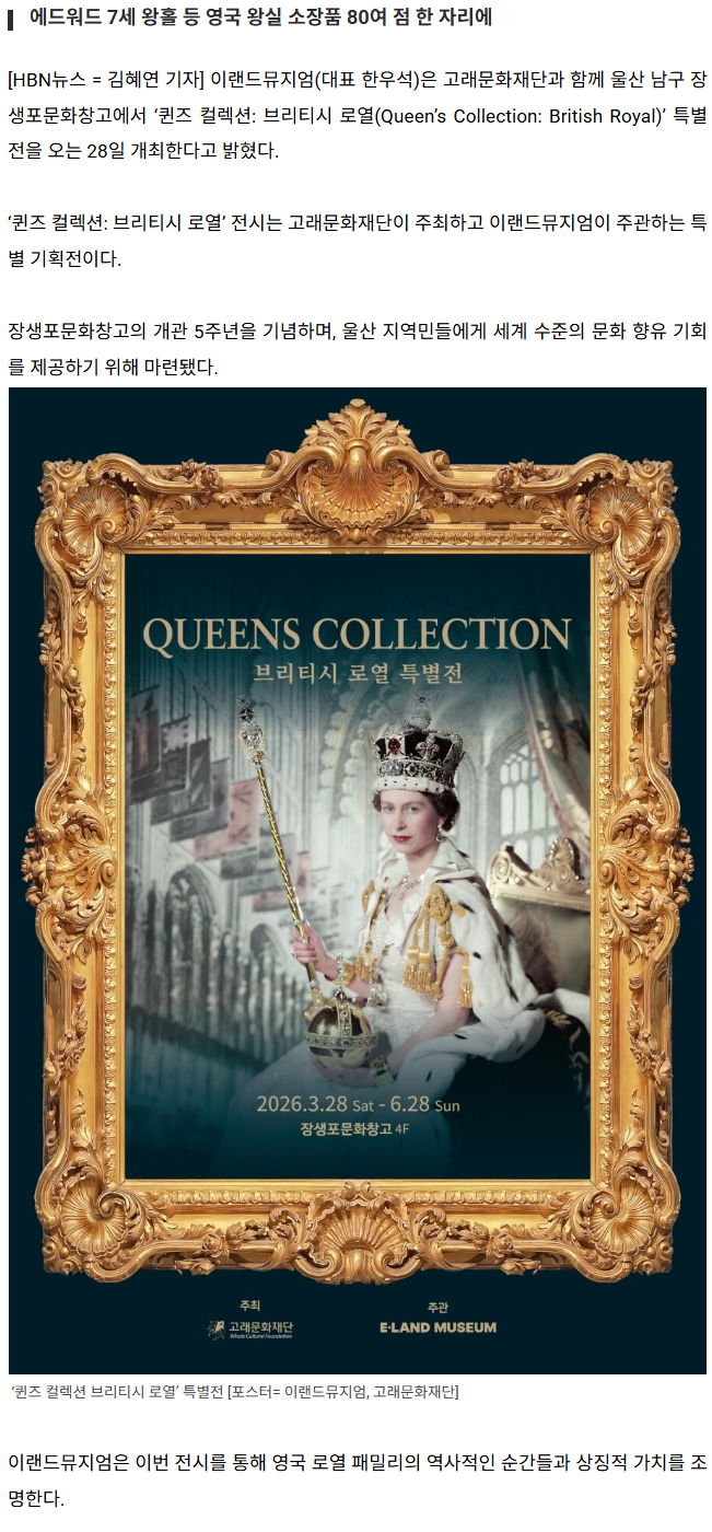 이랜드뮤지엄-고래문화재단, 장생포문화창고 5주년 기념 ′퀸즈 컬렉션′ 특별전 개최