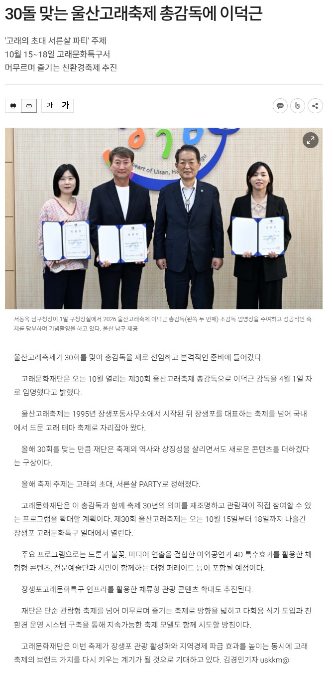 30돌 맞는 울산고래축제 총감독에 이덕근 < 일반 < 사람들 < 기사본문 - 울산신문