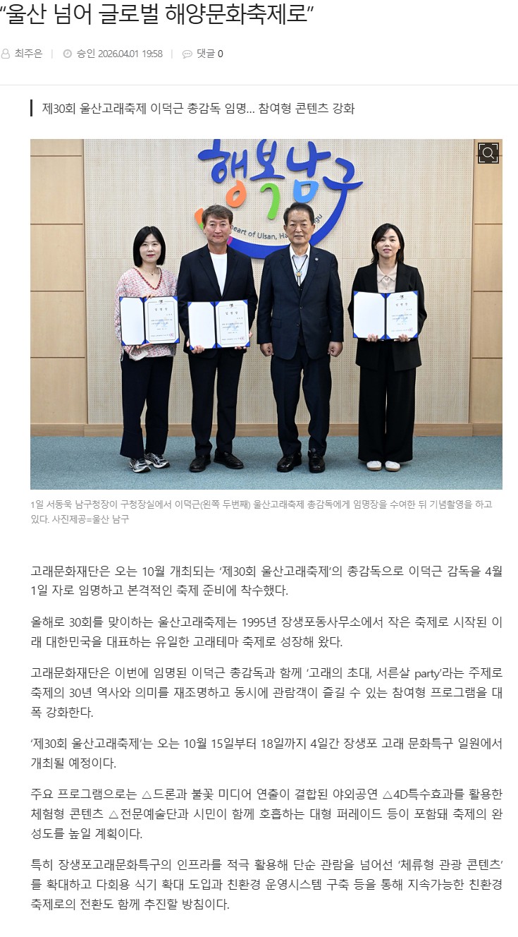 “울산 넘어 글로벌 해양문화축제로” - 울산제일일보